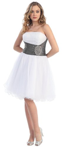 US Fairytailes Strapless Cocktail Party Junior Prom Dress #611 (18, White/Silver)