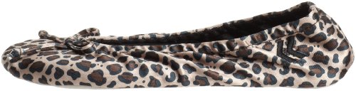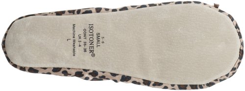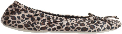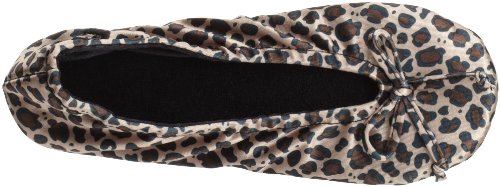 isotoner Women's Satin Ballerina Slipper with Bow, Suede Sole, Cheetah, X-Large