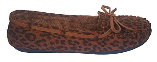 J.J. Elegant Women's Casual Faux Suede Brown Leopard Print Moccasin Loafers