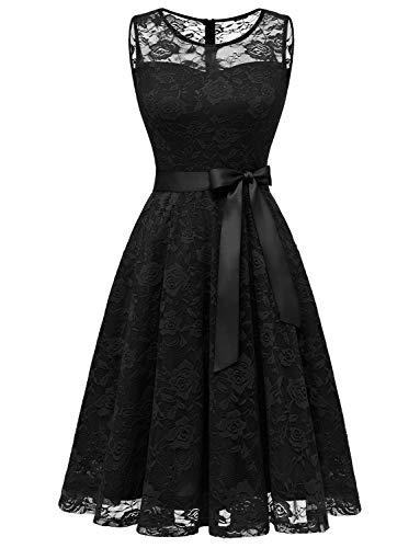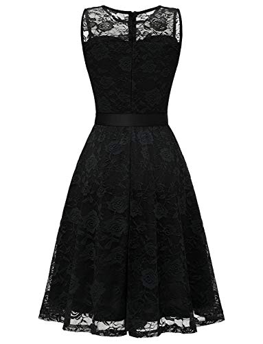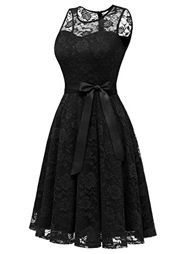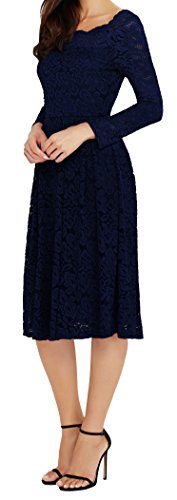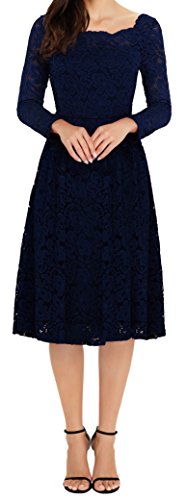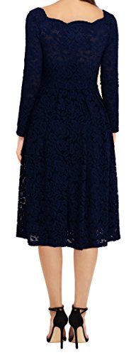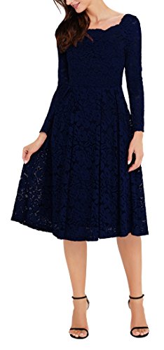 MISSMAY Women's Vintage Floral Lace Long Sleeve Boat Neck Cocktail Party Swing Dress