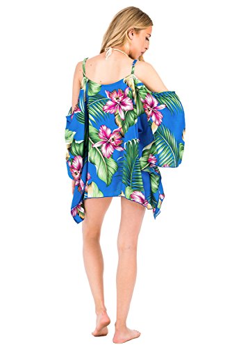 dkhawaii collections Women's Hawaiian Floral Print Spaghetti Strap Beach Poncho Dress