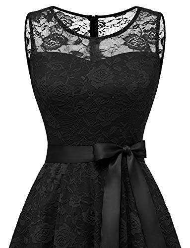 Dressystar Women's Floral Lace Dress Short Bridesmaid Dresses with Sheer Neckline