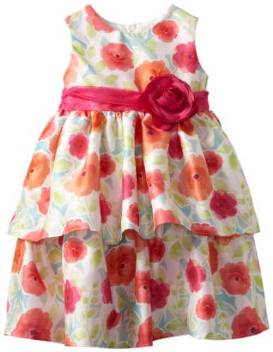 Jayne Copeland Little Girls' Floral Rose Print Shantung Dress